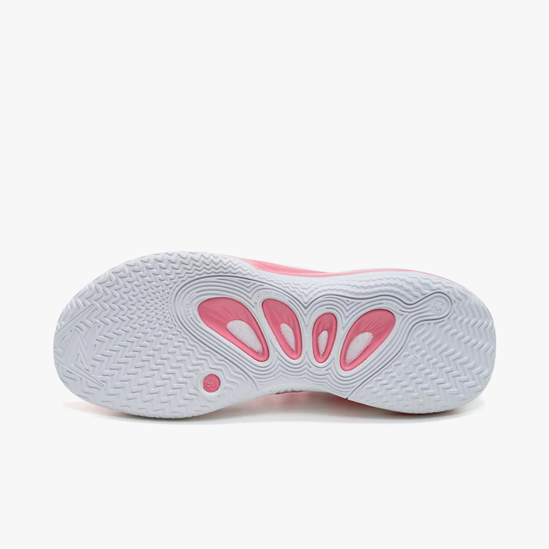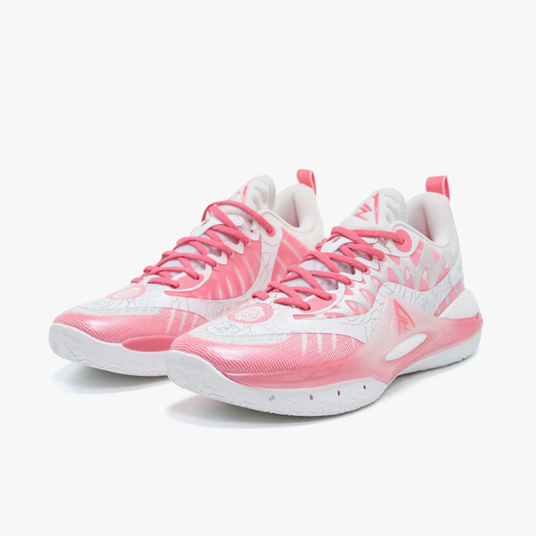 The Rigorer AR2 "Valentine's Day" brings a romantic touch to the basketball court. The stylish design combines a breathable white and pink upper with delicate graphic details like rose motifs. The transparent midsole and subtle branding give the sneaker a modern look. Equipped with responsive cushioning and a grippy outsole, the shoe offers optimal comfort and stability. Perfect for players who want to combine performance with a unique design.