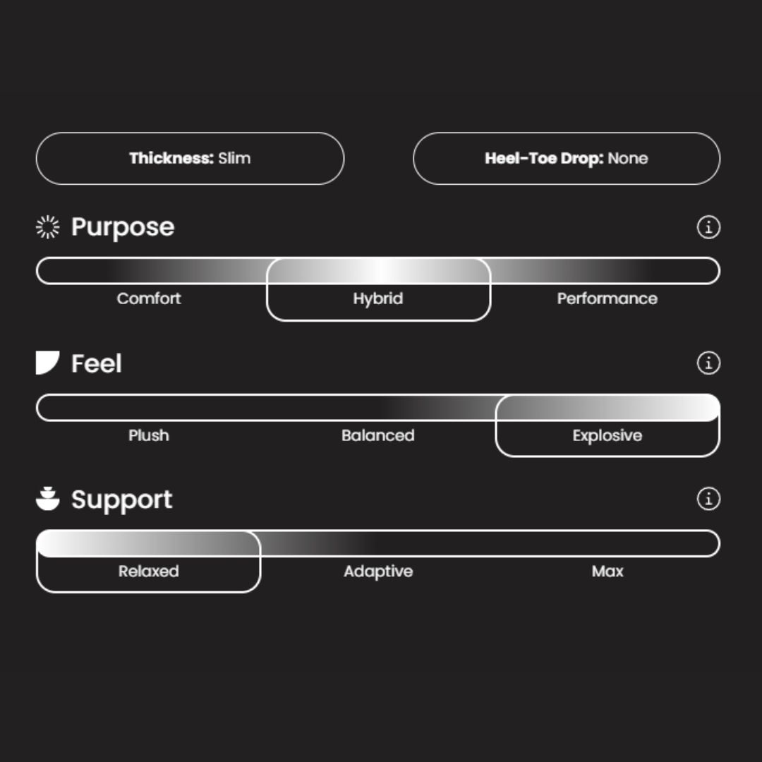 Ultra-thin, ultra-light, and all performance. Featuring our new MoveX Foam, Baseline delivers pro-level comfort, shock absorption, and responsiveness in a slim 5MM profile with zero drop. It fits any sneaker without altering fit—perfect for game day or all-day wear. Durable, bouncy, and supportive without bulk.