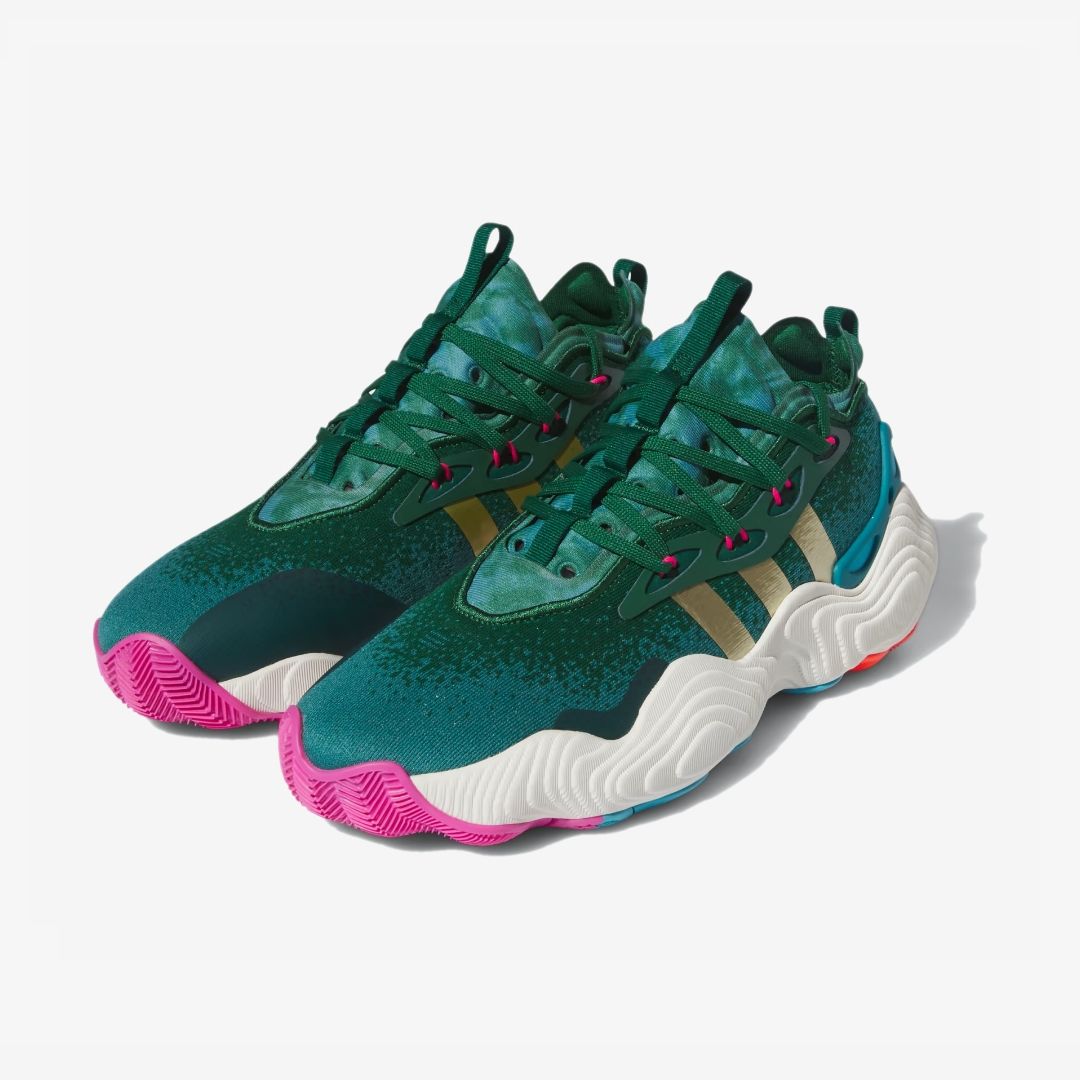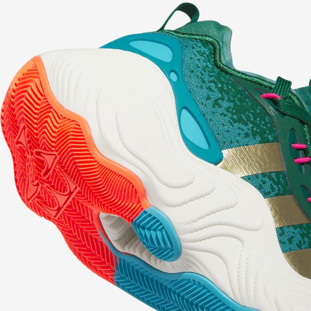 Get ready for what's next. This iteration of the signature shoes from Trae Young and adidas Basketball is all about the future of the game. Celebrating Trae's unique look, crowd-pleasing bravado and expressive, futuristic style of play, these sneakers are built for optimized motion and stability, two elements of Trae's game that have elevated him to superstar status. Composite Foam in the midsole ensure your most explosive moves can be done at top speed while an asymmetrical Torsion System provides added support on hard plants and cuts. The mesh upper has strategically placed engineered zones that maximize breathability so you can push the pace for all four quarters, just like Trae.
