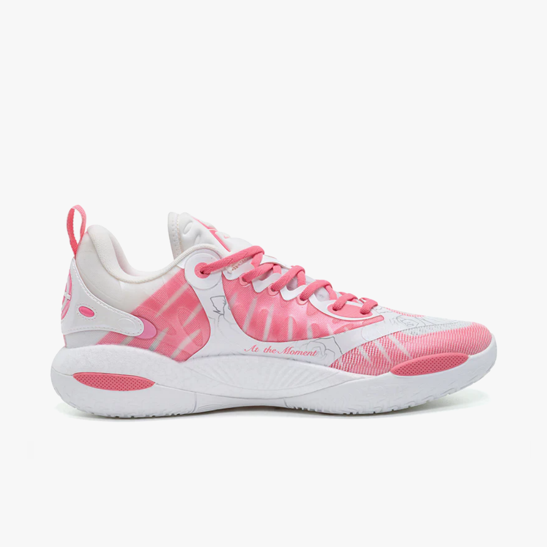 The Rigorer AR2 "Valentine's Day" brings a romantic touch to the basketball court. The stylish design combines a breathable white and pink upper with delicate graphic details like rose motifs. The transparent midsole and subtle branding give the sneaker a modern look. Equipped with responsive cushioning and a grippy outsole, the shoe offers optimal comfort and stability. Perfect for players who want to combine performance with a unique design.