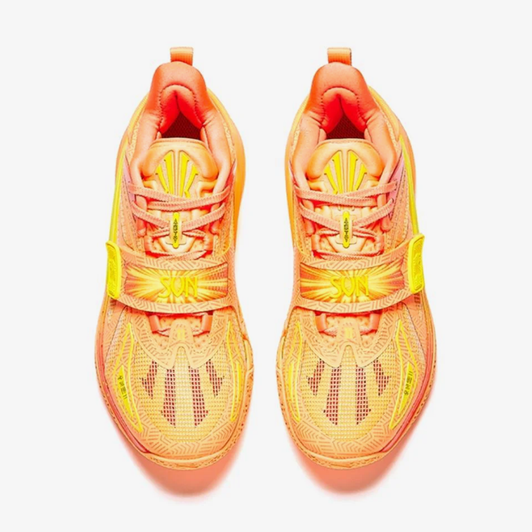 Sun or Moon? Inspired by the radiant hues of the sun, the ANTA KAI 1 ‘Sun’ features a blend of bright yellows and oranges, capturing the energy and intensity of the sun - as seen on Kyrie himself.