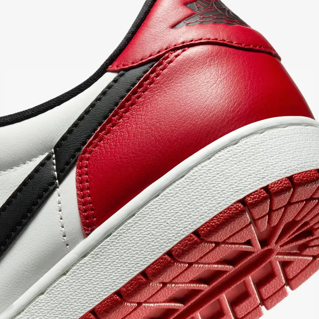 Nothing more iconic. Nothing more timeless. The AJ1 "Chicago" started something back in 1985. And 40 years later, the legacy continues. Giving a nod to the cultural icon, the low-top "Chicago" rendition first debuted in 2016. Grounded in the coveted colorway, this elevated iteration marks its triumphant return. The updated design includes premium Varsity Red and Summit White leather, with smooth black Swoosh logos. Oversized black Swoosh logos turn back the clock to the origins of MJ's all-time classic. The shoe that forever changed footwear continues to honor its enduring heritage—with Nike Air branding on the tongue and insole, and MJ's signature Wings logo stamped on the heel. Step into a revitalized relic of hoops and sneaker history. The "Chicago" is back.